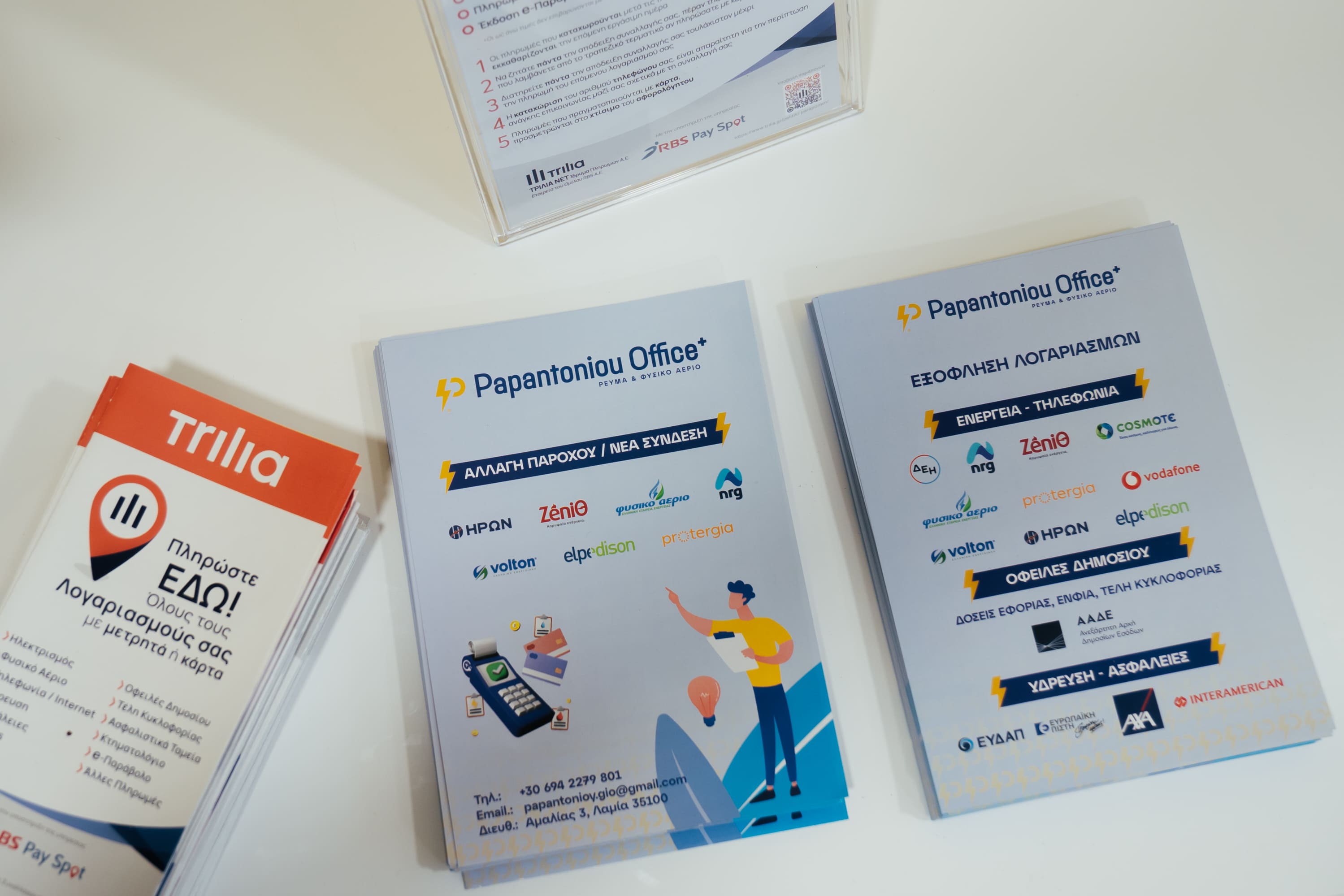 At our office, Papantoniou Office Plus, we offer a completely free new bill payment service, with no additional charges! Easily and quickly, you can handle: